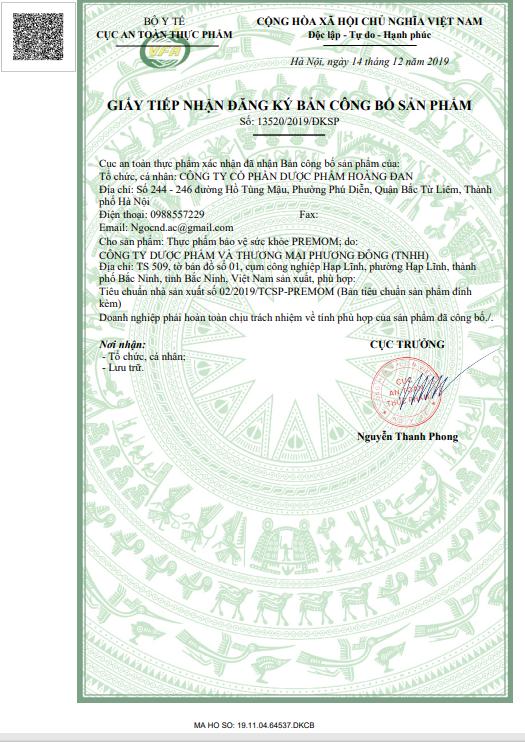 Cám ơn Bạn đã tin tưởng sản phẩm Premom. Bạn có thể đặt hàng bằng cách gọi vào số hotline hoặc để lại thông tin, Chúng tôi sẽ liên hệ lại để tư vấn Bạn nhé.